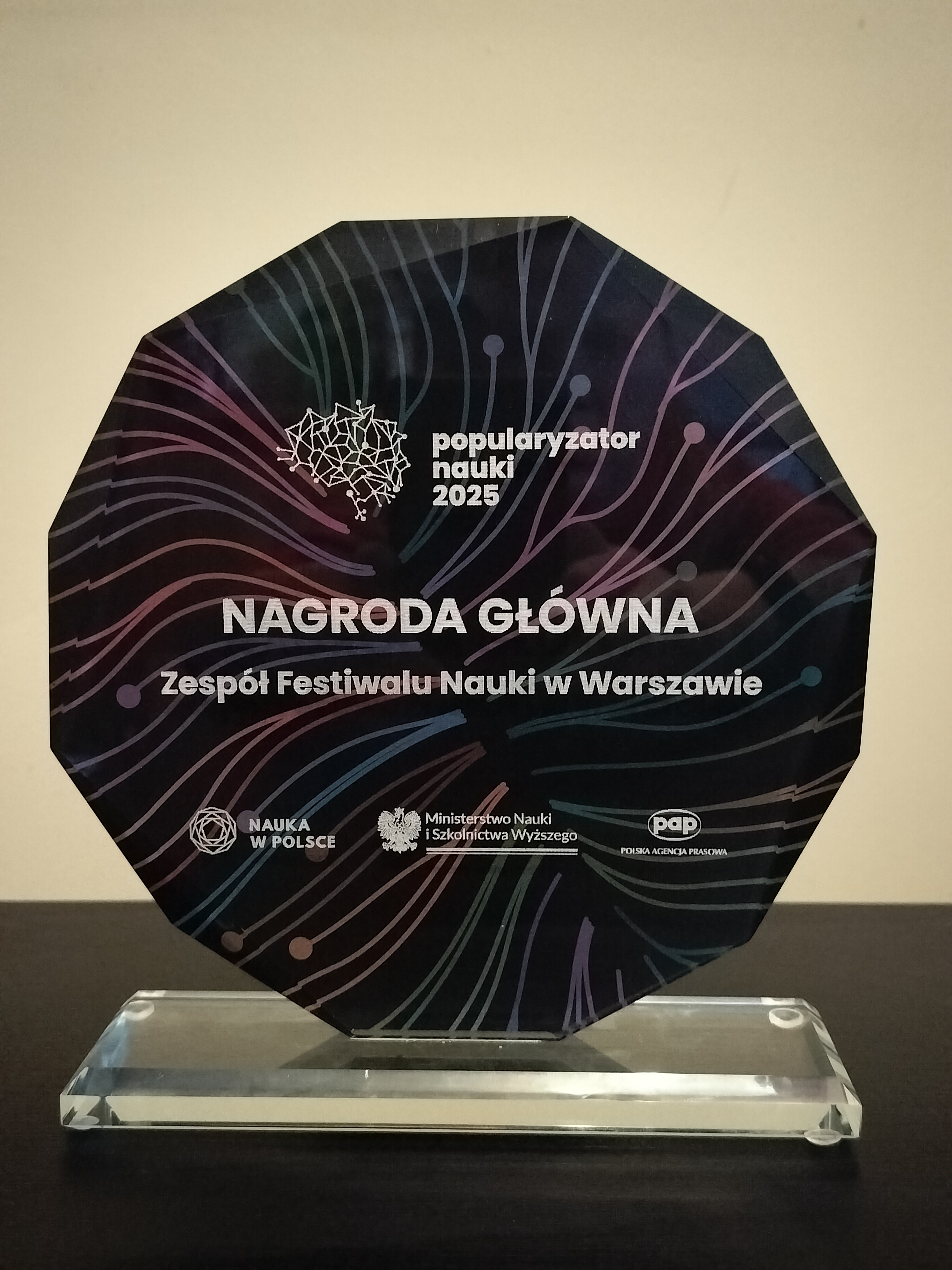 Nagroda Główna konkursu Popularyzator Nauki jest dla nas zobowiązaniem do dalszego działania na rzecz otwartej, dostępnej i inspirującej nauki. Dziękujemy za zaufanie i wspólne budowanie przestrzeni spotkania nauki z ludźmi.