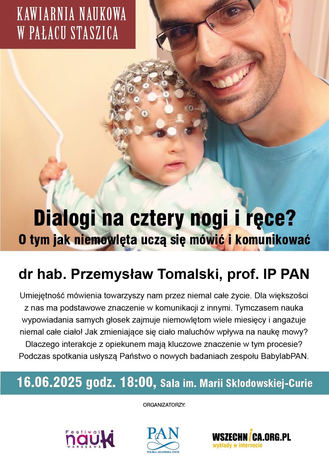 Opis: Umiejętność mówienia towarzyszy nam przez niemal całe życie. Dla większości z nas ma podstawowe znaczenie w komunikacji z innymi. Tymczasem nauka wypowiadania samych głosek zajmuje niemowlętom wiele miesięcy i angażuje niemal całe ciało! Jak zmieniające się ciało maluchów wpływa na naukę mowy? Dlaczego interakcje z opiekunem mają kluczowe znaczenie w tym procesie? Podczas spotkania usłyszą Państwo o nowych badaniach zespołu BabylabPAN.